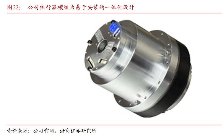 (2)执行器模组:技术路径自主可控,联合开发增效率。执行器模组是机器人关节系统的集成核心,公司采用“自主设计机械传动+联合开发电机”模式。执行器机械传动组件由公司自主完成研发设计,电机组件则采取与合作企业联合开发,兼顾技术可控性与研发效率。公司执行器模组融合谐波减速器、无框电机、伺服驱动板、磁性编码器、刹车片等关键组件,形成一体化设计,具有体积小、重量轻、易于安装等特点。当前该产品处于研发阶段,尚未批量供货。